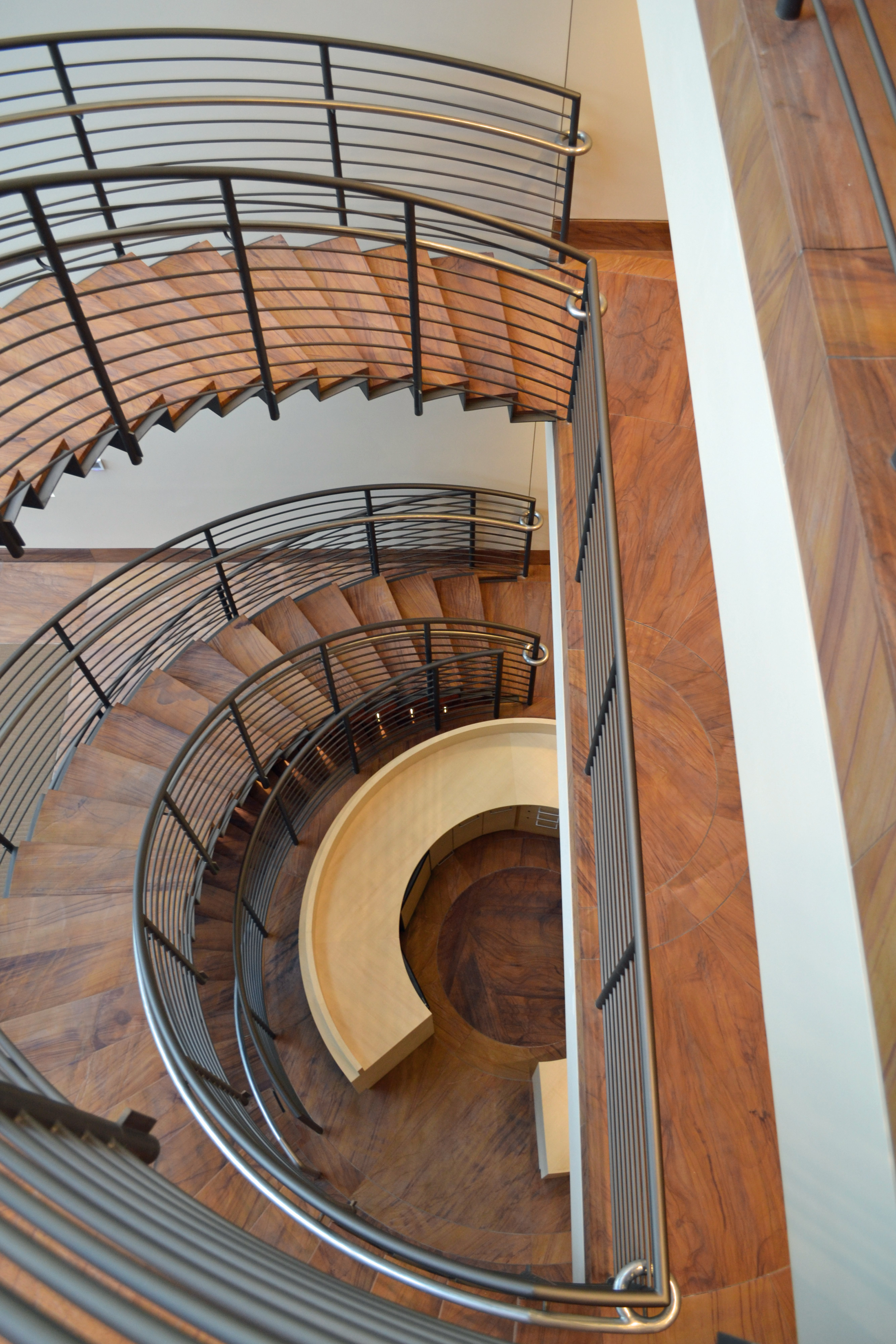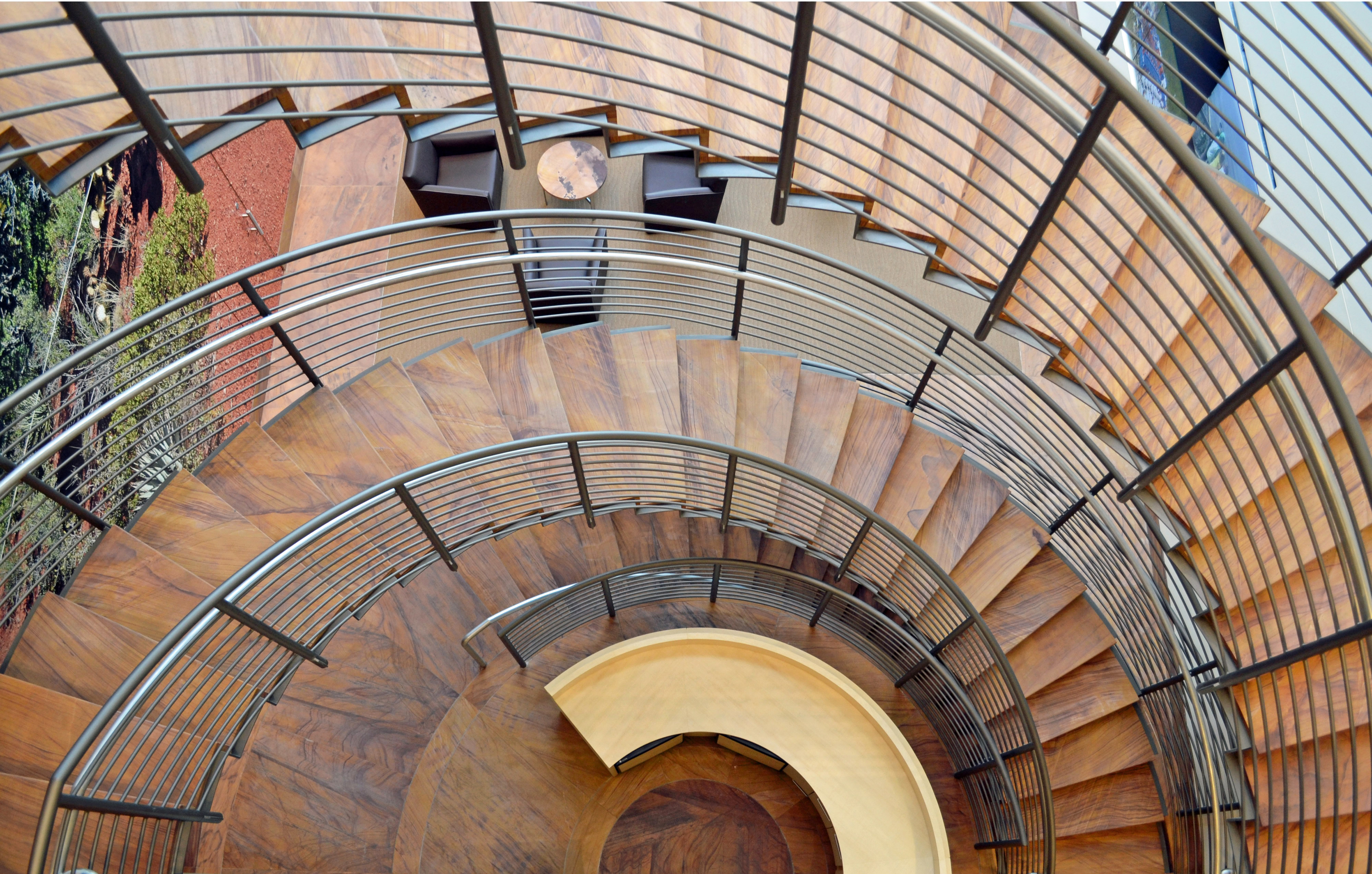 Looking down spiral staircase made of stone